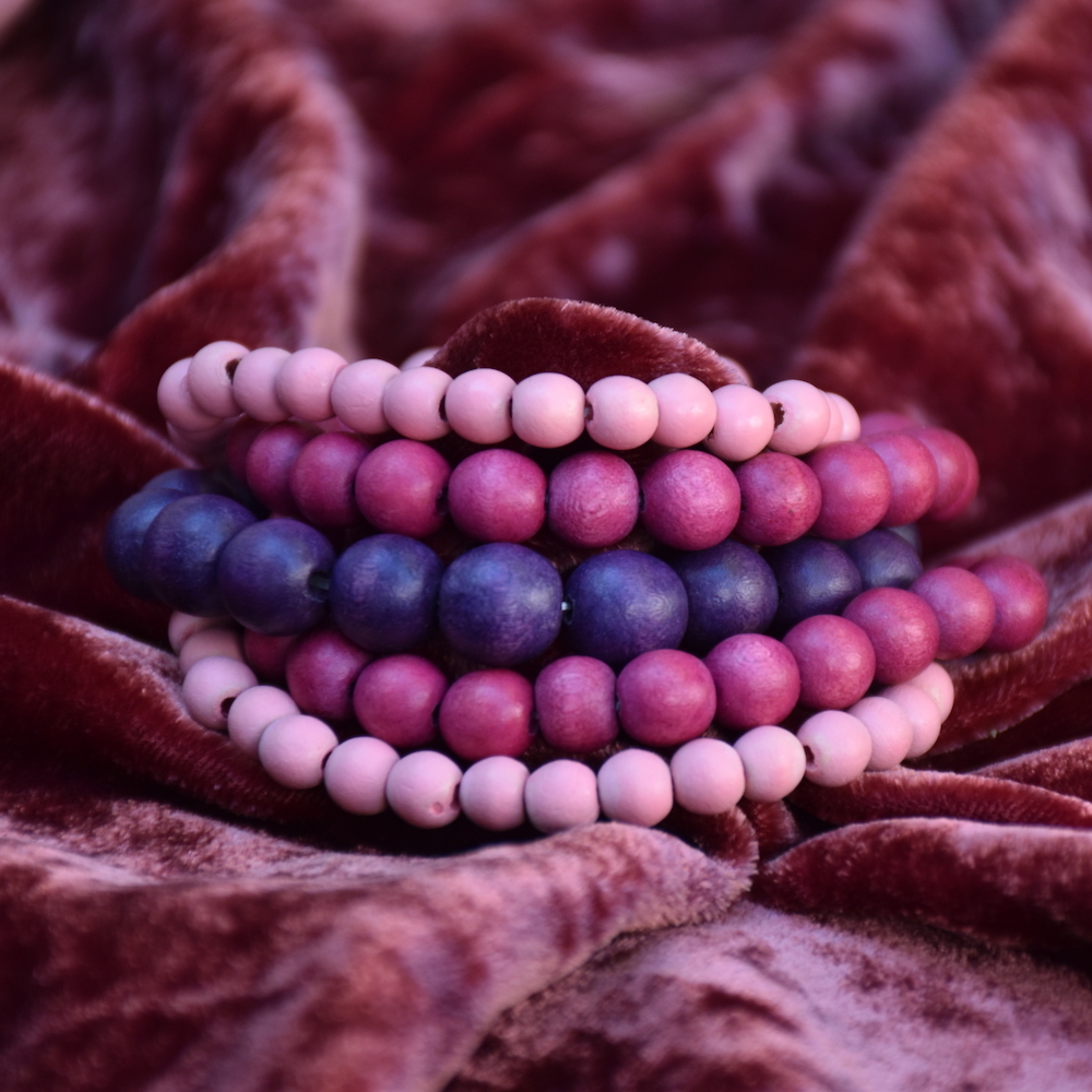 Lolita makes a Splash! A Cluster of Graduated Wooden Beads on Elastic. In Graduated Colours Palette!