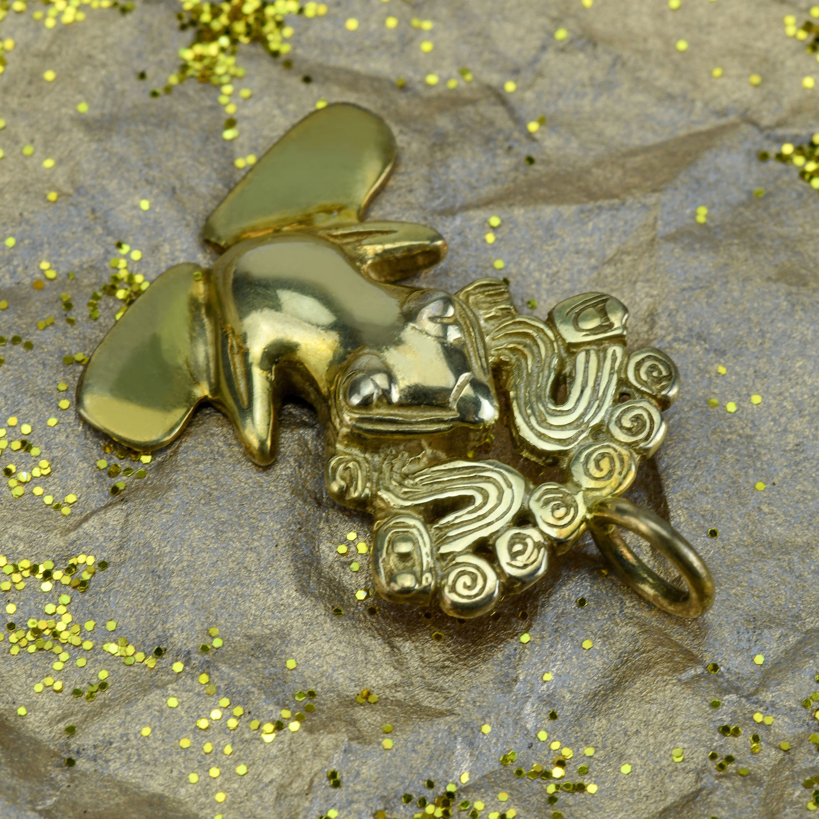 Whilst the original piece was hadcrafted in solid gold by Indigeneous Colombian people hundreds of years ago, this piece has been cast in Sterling Silver and plated in gold from a mold taken from the original.