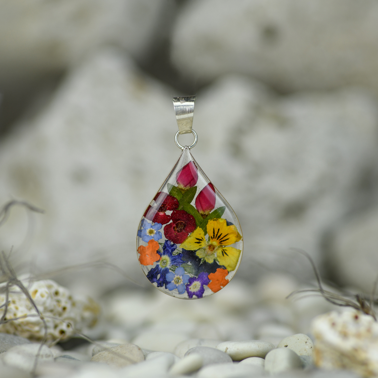 They grow, harvest and dry the flowers, before carefully arranging them in silver casings filled with resin...... one by one.