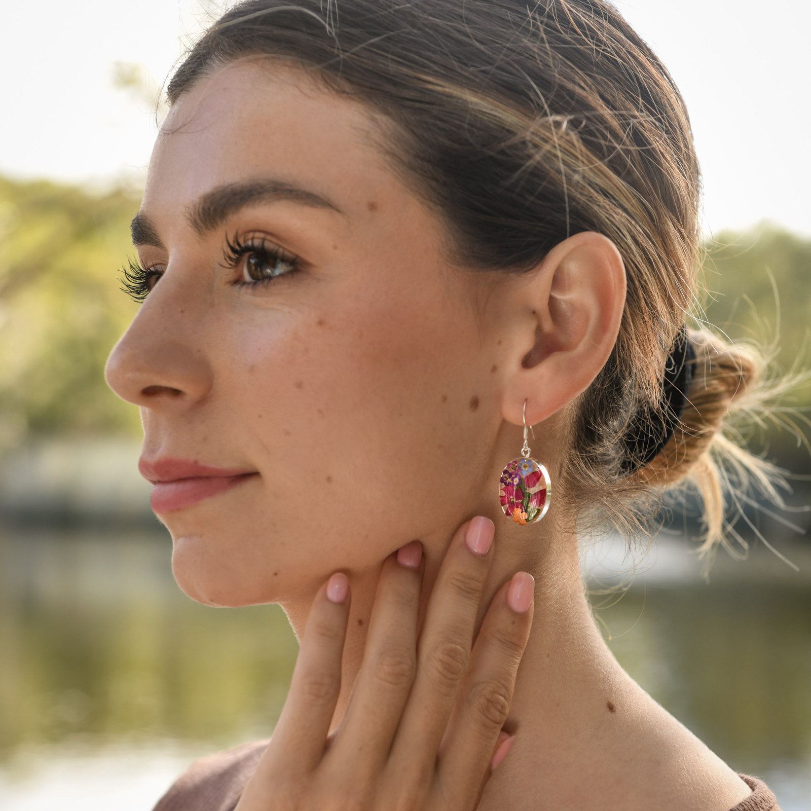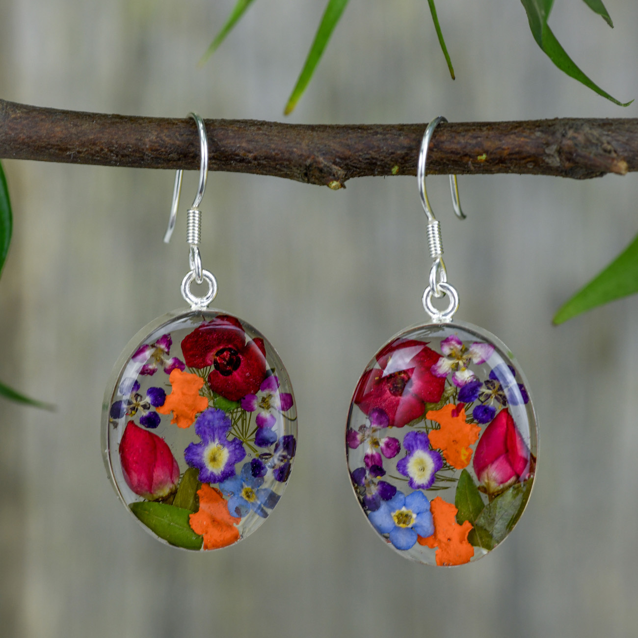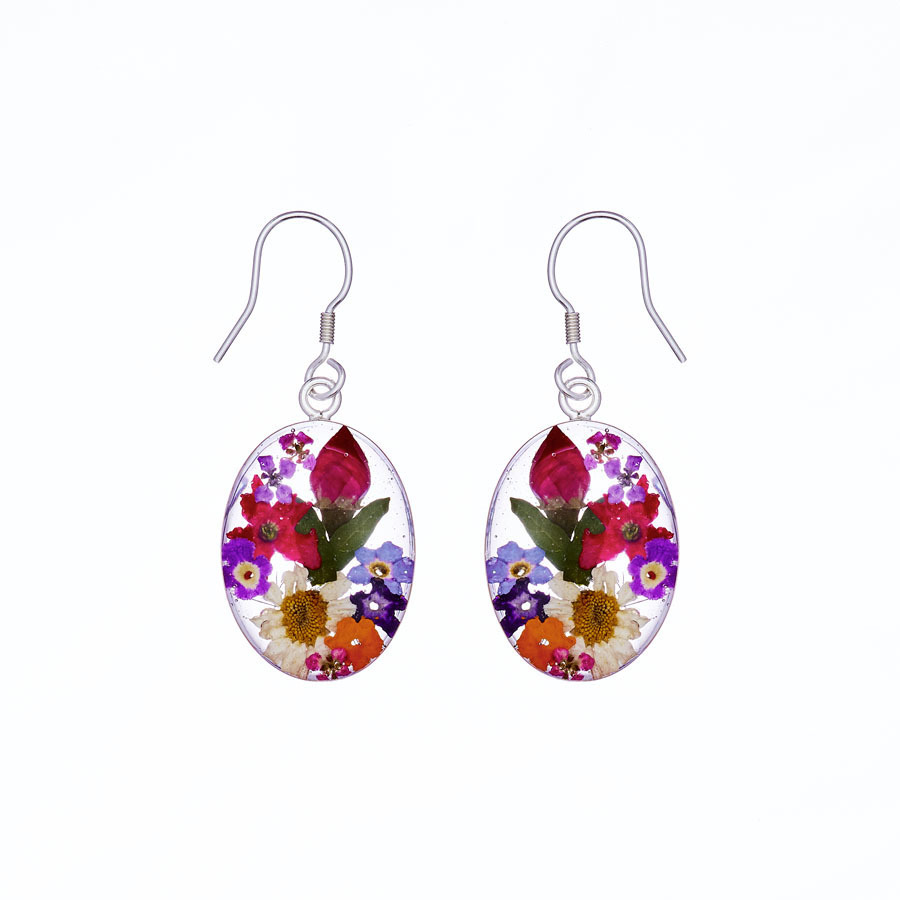 Finally, they carefully selected the blue flowers and arranged them in resin - with tweezers - one by one, creating these beautifully unique earrings. They are testament to the pride, patience and love this family of artisans have for their craft.